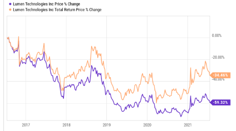 到目前為止,這些舉措尚未為股東帶來回報。事實上,Lumen 股票在過去五年中已經貶值了一半以上。即使考慮到其高股息,該公司在此期間的總回報率仍為 -34%。