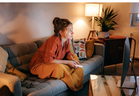 一個(gè)人在家看電視。