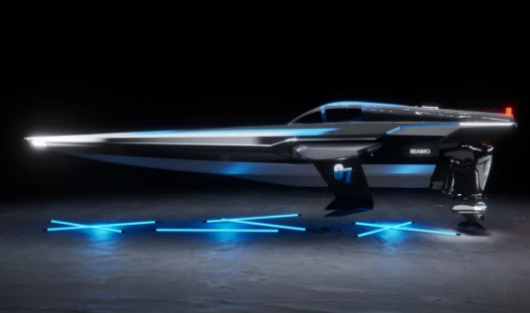 由 Seabird Technologies 和 Victory Marine 設(shè)計(jì)的 Racebird 船將采用全碳機(jī)身,兩側(cè)的機(jī)翼折疊起來(lái)形成前水翼,外側(cè)馬達(dá)上的加長(zhǎng)尾翼用于后翼。機(jī)艙是全封閉的,就像高速汽油摩托艇一樣,所以它們看起來(lái)就像掠過(guò)表面的宇宙飛船。