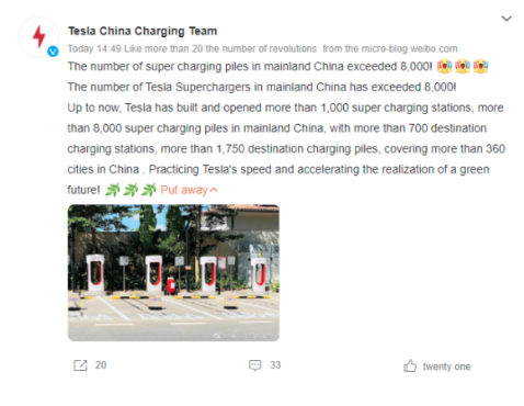 今天早些時候,電動汽車巨頭特斯拉的中國充電團隊宣布,他們已經(jīng)實現(xiàn)了在中國大陸安裝 1000 個超級充電站、在中國各地安裝 8000 個超級充電站的里程碑。該公告在微博(中國微博網(wǎng)站)上分享。