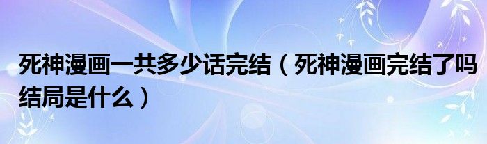 大家好,小安來為大家解答以上問題。死神漫畫一共多少話完結,死神漫畫完結了嗎結局是什么很多人還不知道,現在讓我們一起來看看吧!