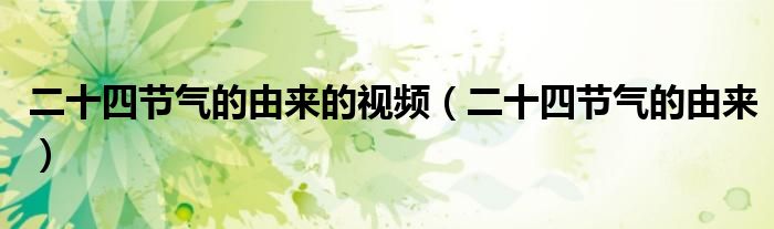 大家好,小安來為大家解答以上問題。二十四節(jié)氣的由來的視頻,二十四節(jié)氣的由來很多人還不知道,現(xiàn)在讓我們一起來看看吧!