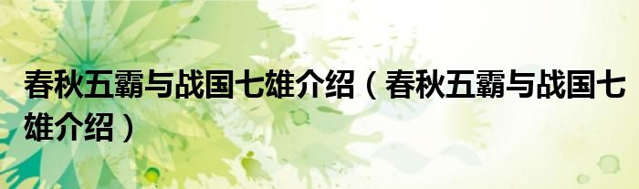 大家好,小安來為大家解答以上問題。春秋五霸與戰(zhàn)國七雄介紹,春秋五霸與戰(zhàn)國七雄介紹很多人還不知道,現(xiàn)在讓我們一起來看看吧!