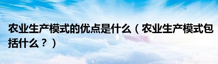 大家好,小安來為大家解答以上問題。農業生產模式的優點是什么,農業生產模式包括什么?很多人還不知道,現在讓我們一起來看看吧!
