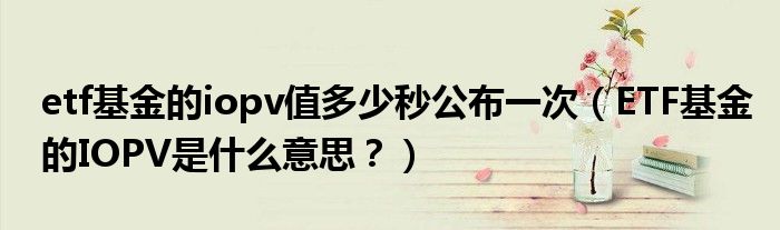 大家好,小安來為大家解答以上問題。etf基金的iopv值多少秒公布一次,ETF基金的IOPV是什么意思?很多人還不知道,現在讓我們一起來看看吧!