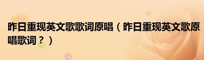 大家好,小安來為大家解答以上問題。昨日重現(xiàn)英文歌歌詞原唱,昨日重現(xiàn)英文歌原唱歌詞?很多人還不知道,現(xiàn)在讓我們一起來看看吧!