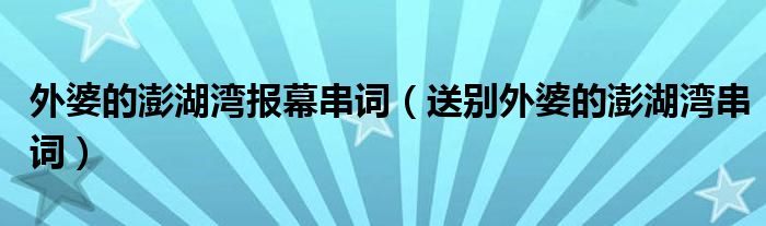 大家好,小動來為大家解答以上問題。外婆的澎湖灣報幕串詞,送別外婆的澎湖灣串詞很多人還不知道,現在讓我們一起來看看吧!