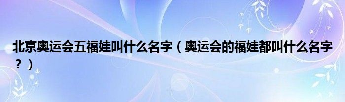 大家好,小安來為大家解答以上問題。北京奧運會五福娃叫什么名字,奧運會的福娃都叫什么名字?很多人還不知道,現在讓我們一起來看看吧!