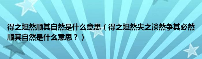 大家好,小安來為大家解答以上問題。得之坦然順其自然是什么意思,得之坦然失之淡然爭其必然順其自然是什么意思?很多人還不知道,現在讓我們一起來看看吧!