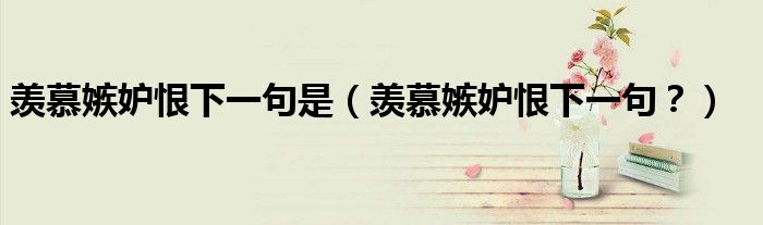 大家好,小安來為大家解答以上問題。羨慕嫉妒恨下一句是,羨慕嫉妒恨下一句?很多人還不知道,現在讓我們一起來看看吧!