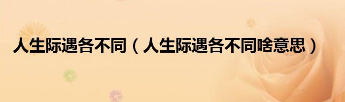 大家好,小安來為大家解答以上問題。人生際遇各不同,人生際遇各不同啥意思很多人還不知道,現(xiàn)在讓我們一起來看看吧!