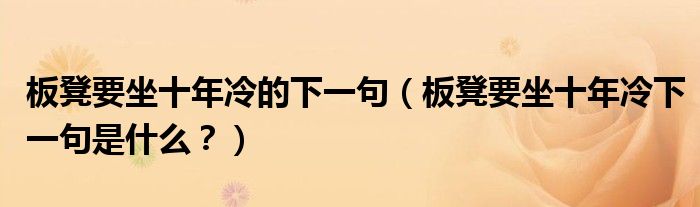 大家好,小安來為大家解答以上問題。板凳要坐十年冷的下一句,板凳要坐十年冷下一句是什么?很多人還不知道,現在讓我們一起來看看吧!