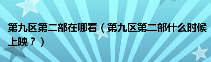 大家好,小安來為大家解答以上問題。第九區第二部在哪看,第九區第二部什么時候上映?很多人還不知道,現在讓我們一起來看看吧!