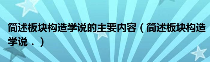 大家好,小安來為大家解答以上問題。簡述板塊構造學說的主要內容,簡述板塊構造學說.很多人還不知道,現在讓我們一起來看看吧!