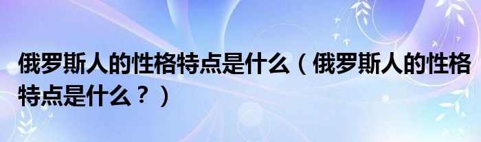 大家好,小安來為大家解答以上問題。俄羅斯人的性格特點是什么,俄羅斯人的性格特點是什么?很多人還不知道,現(xiàn)在讓我們一起來看看吧!
