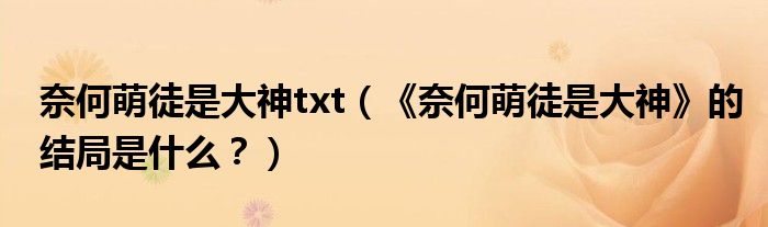 大家好,小安來為大家解答以上問題。奈何萌徒是大神txt,《奈何萌徒是大神》的結局是什么?很多人還不知道,現在讓我們一起來看看吧!