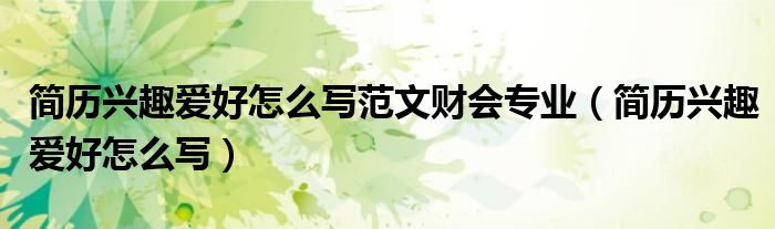 大家好,小安來為大家解答以上問題。簡歷興趣愛好怎么寫范文財會專業,簡歷興趣愛好怎么寫很多人還不知道,現在讓我們一起來看看吧!