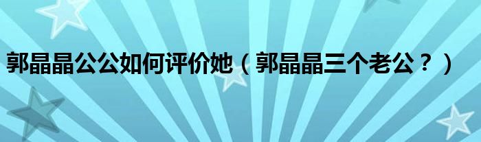 大家好,小安來為大家解答以上問題。郭晶晶公公如何評價她,郭晶晶三個老公?很多人還不知道,現在讓我們一起來看看吧!