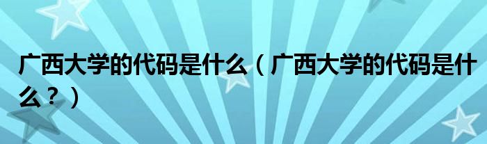 大家好,小安來為大家解答以上問題。廣西大學的代碼是什么,廣西大學的代碼是什么?很多人還不知道,現在讓我們一起來看看吧!