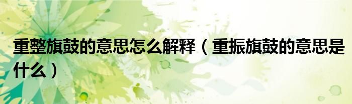 大家好,小安來為大家解答以上問題。重整旗鼓的意思怎么解釋,重振旗鼓的意思是什么很多人還不知道,現(xiàn)在讓我們一起來看看吧!