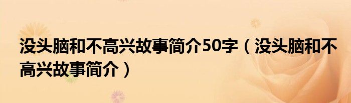 大家好,小安來為大家解答以上問題。沒頭腦和不高興故事簡介50字,沒頭腦和不高興故事簡介很多人還不知道,現在讓我們一起來看看吧!