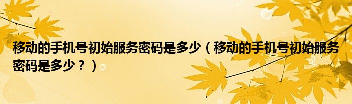 大家好,小安來為大家解答以上問題。移動的手機號初始服務密碼是多少,移動的手機號初始服務密碼是多少?很多人還不知道,現在讓我們一起來看看吧!