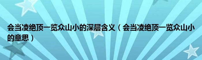 大家好,小安來為大家解答以上問題。會當(dāng)凌絕頂一覽眾山小的深層含義,會當(dāng)凌絕頂一覽眾山小的意思很多人還不知道,現(xiàn)在讓我們一起來看看吧!
