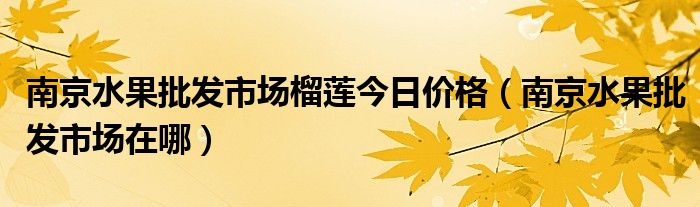 大家好,小安來(lái)為大家解答以上問(wèn)題。南京水果批發(fā)市場(chǎng)榴蓮今日價(jià)格,南京水果批發(fā)市場(chǎng)在哪很多人還不知道,現(xiàn)在讓我們一起來(lái)看看吧!