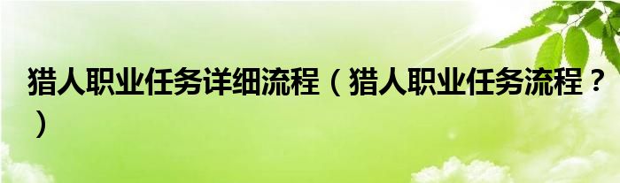 獵人職業(yè)任務(wù)詳細(xì)流程(獵人職業(yè)任務(wù)流程?)