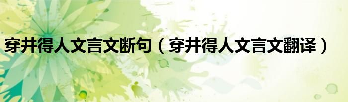 大家好,小安來為大家解答以上問題。穿井得人文言文斷句,穿井得人文言文翻譯很多人還不知道,現在讓我們一起來看看吧!