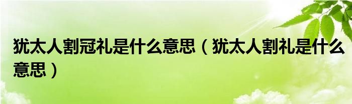 大家好,小動來為大家解答以上問題。猶太人割冠禮是什么意思,猶太人割禮是什么意思很多人還不知道,現在讓我們一起來看看吧!