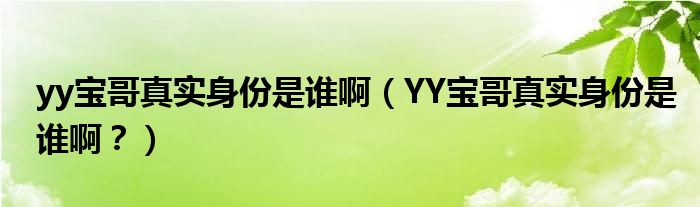 大家好,小安來為大家解答以上問題。yy寶哥真實身份是誰啊,YY寶哥真實身份是誰啊?很多人還不知道,現在讓我們一起來看看吧!