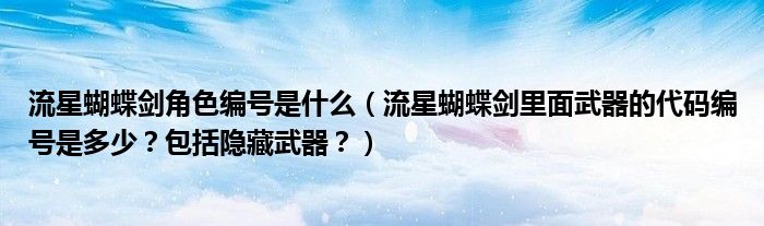 大家好,小安來為大家解答以上問題。流星蝴蝶劍角色編號是什么,流星蝴蝶劍里面武器的代碼編號是多少?包括隱藏武器?很多人還不知道,現(xiàn)在讓我們一起來看看吧!