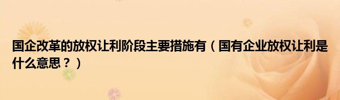 大家好,小安來為大家解答以上問題。國企改革的放權讓利階段主要措施有,國有企業放權讓利是什么意思?很多人還不知道,現在讓我們一起來看看吧!