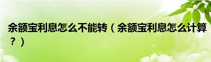 大家好,小安來為大家解答以上問題。余額寶利息怎么不能轉,余額寶利息怎么計算?很多人還不知道,現在讓我們一起來看看吧!