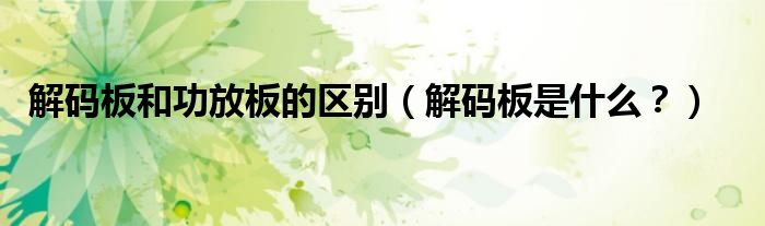 大家好,小安來為大家解答以上問題。解碼板和功放板的區別,解碼板是什么?很多人還不知道,現在讓我們一起來看看吧!
