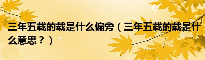 大家好,小安來為大家解答以上問題。三年五載的載是什么偏旁,三年五載的載是什么意思?很多人還不知道,現在讓我們一起來看看吧!