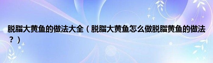 1、 脫脂大黃魚可以這樣蒸:準備材料:脫脂大黃魚1油、鹽2湯匙、白酒1茶匙、小蔥1茶匙、黃酒少許、姜1湯匙、青椒絲10克、醬油蒸魚少許、2湯匙1。將脫脂大黃魚洗凈,瀝干水分,準備好蔥、姜片、姜絲、青椒絲、白酒、黃酒、醬油蒸魚。
