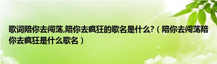 大家好,小安來為大家解答以上問題。歌詞陪你去闖蕩,陪你去瘋狂的歌名是什么?,陪你去闖蕩陪你去瘋狂是什么歌名很多人還不知道,現(xiàn)在讓我們一起來看看吧!