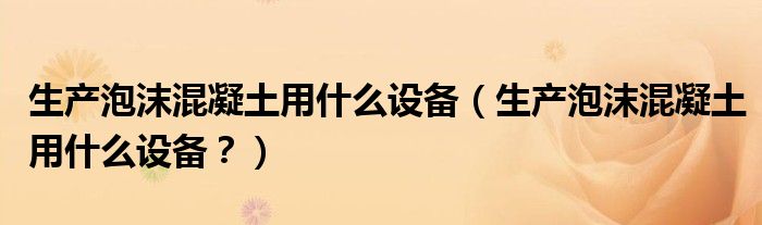 大家好,小安來為大家解答以上問題。生產泡沫混凝土用什么設備,生產泡沫混凝土用什么設備?很多人還不知道,現在讓我們一起來看看吧!