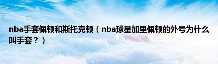 大家好,小安來為大家解答以上問題。nba手套佩頓和斯托克頓,nba球星加里佩頓的外號(hào)為什么叫手套?很多人還不知道,現(xiàn)在讓我們一起來看看吧!