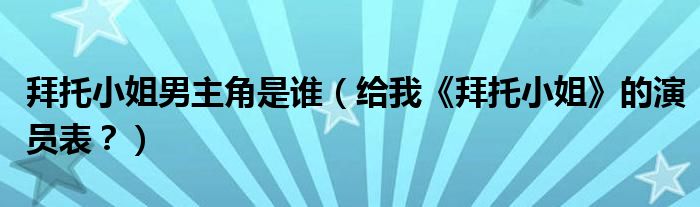 大家好,小安來為大家解答以上問題。拜托小姐男主角是誰,給我《拜托小姐》的演員表?很多人還不知道,現在讓我們一起來看看吧!
