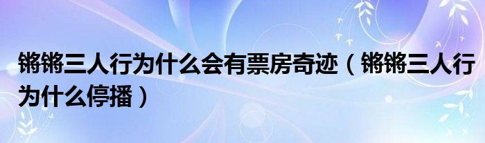 大家好,小安來為大家解答以上問題。鏘鏘三人行為什么會有票房奇跡,鏘鏘三人行為什么停播很多人還不知道,現在讓我們一起來看看吧!