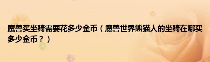 大家好,小安來為大家解答以上問題。魔獸買坐騎需要花多少金幣,魔獸世界熊貓人的坐騎在哪買多少金幣?很多人還不知道,現在讓我們一起來看看吧!