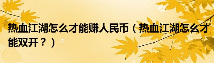 大家好,小安來為大家解答以上問題。熱血江湖怎么才能賺人民幣,熱血江湖怎么才能雙開?很多人還不知道,現在讓我們一起來看看吧!