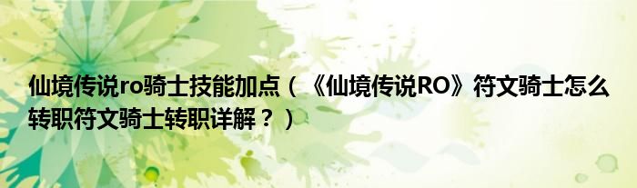 大家好,小安來為大家解答以上問題。仙境傳說ro騎士技能加點,《仙境傳說RO》符文騎士怎么轉職符文騎士轉職詳解?很多人還不知道,現在讓我們一起來看看吧!