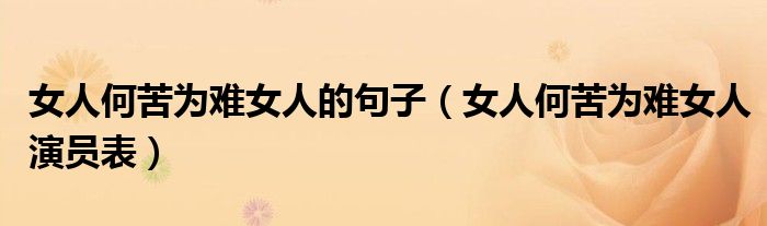 大家好,小安來為大家解答以上問題。女人何苦為難女人的句子,女人何苦為難女人演員表很多人還不知道,現(xiàn)在讓我們一起來看看吧!
