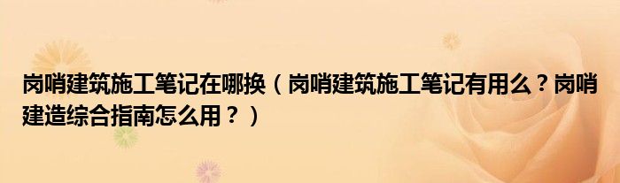 大家好,小安來(lái)為大家解答以上問(wèn)題。崗哨建筑施工筆記在哪換,崗哨建筑施工筆記有用么?崗哨建造綜合指南怎么用?很多人還不知道,現(xiàn)在讓我們一起來(lái)看看吧!