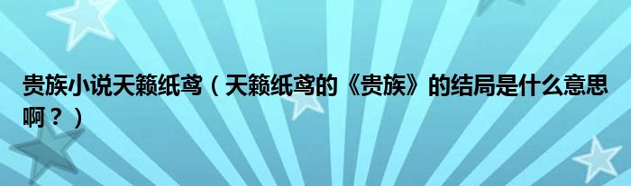 大家好,小安來為大家解答以上問題。貴族小說天籟紙鳶,天籟紙鳶的《貴族》的結局是什么意思啊?很多人還不知道,現在讓我們一起來看看吧!
