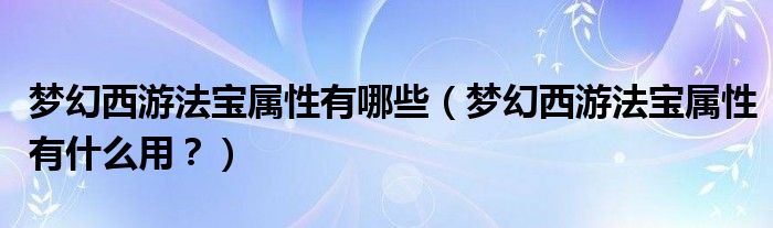 大家好,小安來為大家解答以上問題。夢幻西游法寶屬性有哪些,夢幻西游法寶屬性有什么用?很多人還不知道,現在讓我們一起來看看吧!